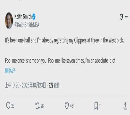 快船主帅泰伦卢赛后说道:“我们打得像屎一样,输球的责任在我!”NBA记者Keith Smith在中场休息时发推点评:“骗我一次,是你可耻;骗我七次,是我愚蠢!之前我预测快船能排西部第三,现在的我就是个彻彻底底的大傻瓜!”