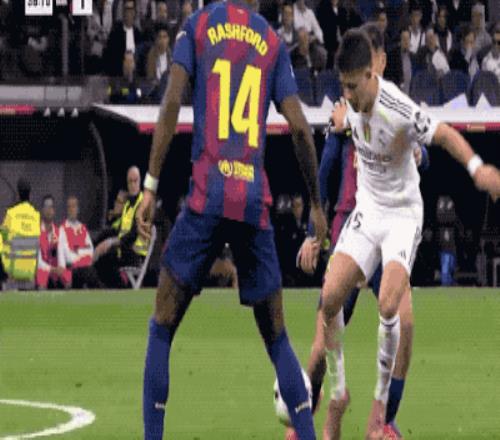 第38分钟,居莱尔出球太慢被拉什福德捅掉,经过一系列的配合,拉什福德助攻费尔明扳平比分。