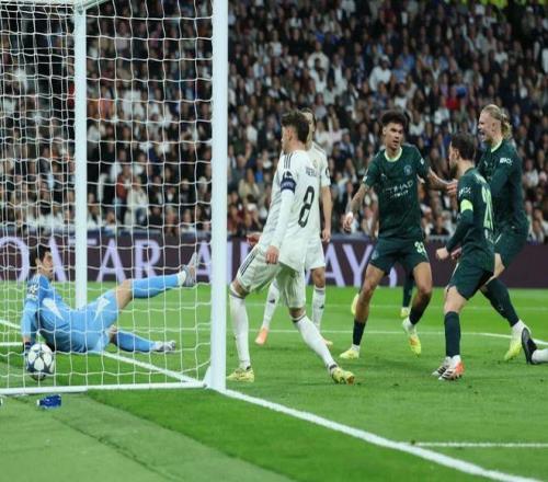 半场结束前,哈兰德禁区内遭吕迪格抱摔倒地,主裁判判罚点球,挪威锋霸操刀主罚稳稳命中将比分反超,命中个人第54场欧冠比赛的第55粒进球。本以为下半场全力反扑的皇马能改写比分扭转颓势,但“银河战舰”却未能如愿,就这样看着曼城从伯纳乌带走关键三分。值得一提的是,这场比赛仅仅是曼城队史第二次在客场击败皇马,上一次是在2020年2月,当时依靠着德布劳内的传射建功,曼城欧冠1/8决赛首回合以同样的比分击败对手取胜。