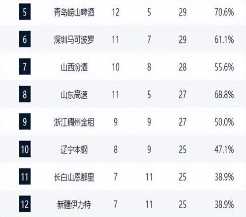 山西队本轮在客场输给深圳队,战绩变为10胜8负,排名第七。输掉这一战后,山西队的压力较大,接下来他们将面对广东队、北京队以及浙江队等强敌,想要全身而退恐怕没有那么容易。积分榜第9名属于浙江队,他们本轮输给北京队后,战绩变为9胜9负,胜率刚好过半。四冠王辽宁队则排在积分榜第10名,球队的战绩为8胜9负。吉林队以7胜11负的战绩位列第11名。
