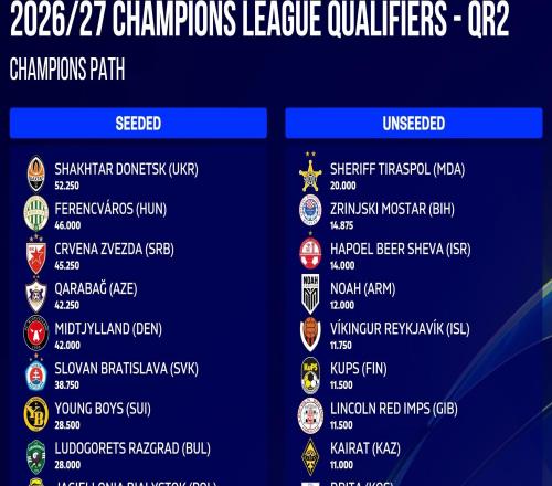 25/26赛季欧冠资格赛第三轮首回合比赛全部结束。次回合比赛将于8月12日进行,两回合的10支获胜球队将晋级欧冠附加赛阶段,冠军路径中告负的6支球队将进入欧联杯附加赛,联赛路径